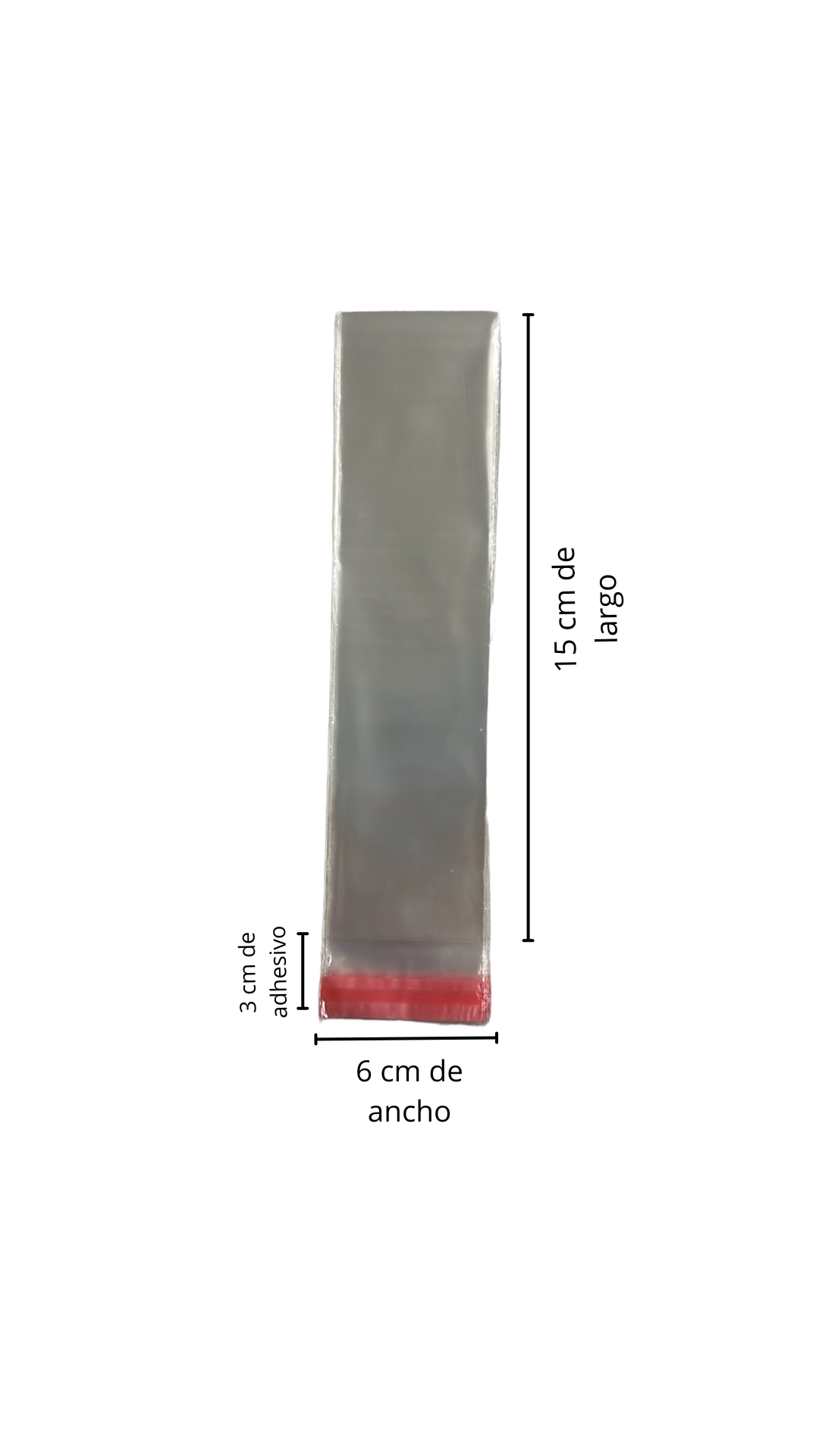 Bolsa de celofán de 6 cm de ancho x 15 cm de alto + 3 cm de adhesivo con 1,000 piezas